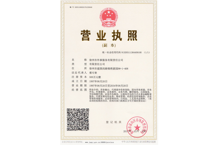 CCopyright ? 2018 版權(quán)所有:徐州市外事服務(wù)有限責(zé)任公司蘇ICP備10001414號(hào)-1蘇公網(wǎng)安備 32031102001060號(hào)