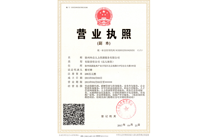 新沂分公司營(yíng)業(yè)執(zhí)照