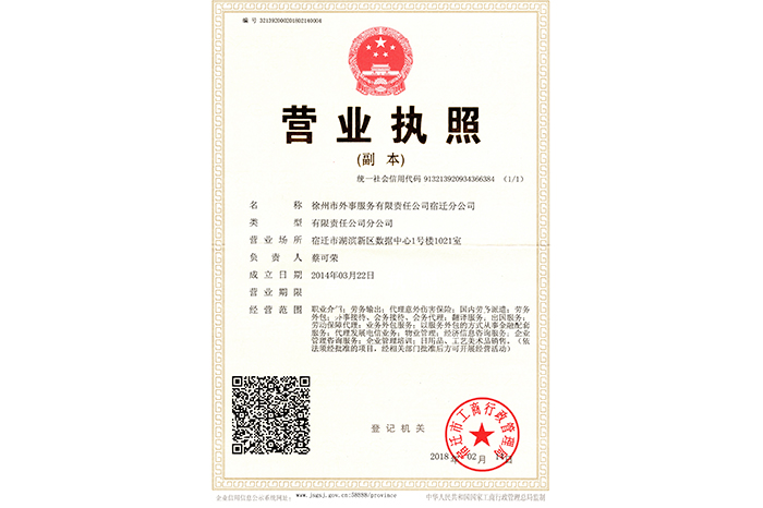 宿遷分公司營(yíng)業(yè)執(zhí)照
